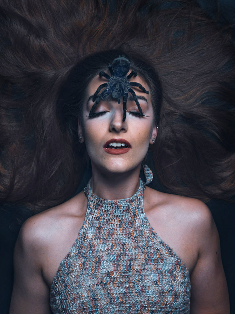 Die Fotos dieser Galerie sind bei unseren "Fotoshootings mit Schlangen und Spinnen" entstanden. Einige Bilder sind freie Arbeiten. Einmal konnte ich für eine Modestrecke aus dem Repertoir der fotogenen Krabbeltiere aus dem vollen schöpfen.